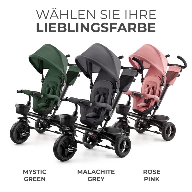 Kinderkraft AVEO Dreirad ab 9 Monate bis 25 kg, Kinderdreirad mit schubstange, Kompakte zusammenklappen, drehbarer Sitz, ausklappbarem Verdeck mit sonnenschutz, Getränkehalter korb im set, Grau