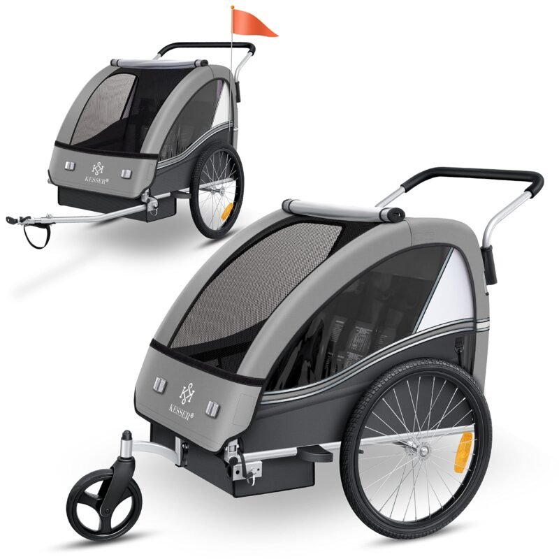LIONELO Amber Kinderwagen 3 in 1 Kombikinderwagen Set sportlicher Sitz fester Babywanne Autositz Tasche Moskitonetz Regenschutz XXL-Dach mit Sonnenschutz (GRAU)